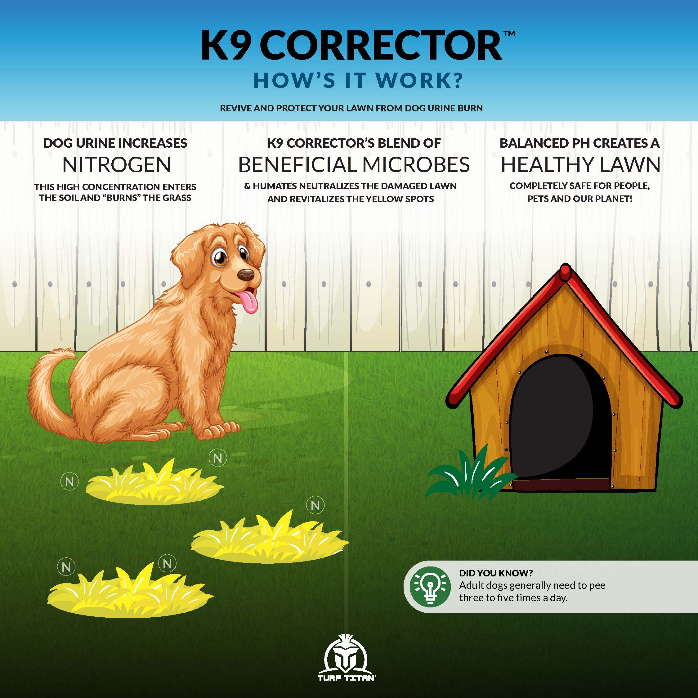 Are you passionate about pets and your lawns? Us too! But those annoying urine spots? Not on our watch. K9 Corrector is the ultimate solution powered by a powerhouse team of microbes. Say goodbye to yellow and hello to revived, green grass. Whether it's spot treatment or proactive prevention, K9 Corrector has got you covered.